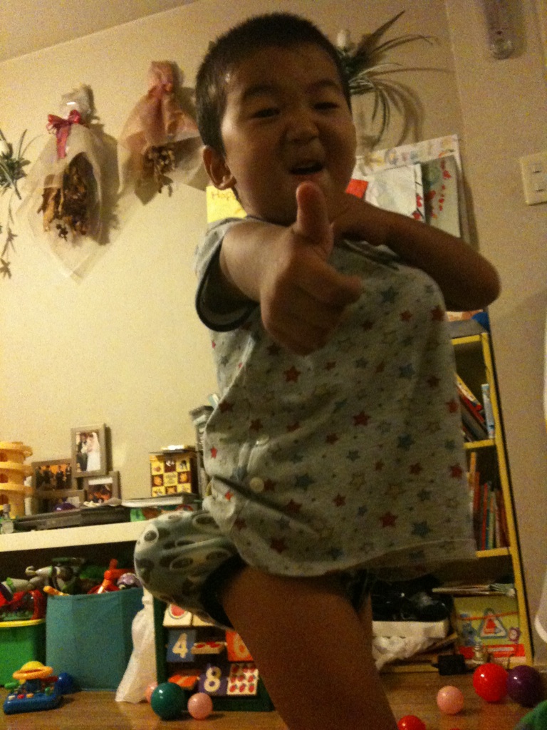 実は、第3子を授かりました!というのは、あり得そうで無い冗談ですが、 ソラのヘアースタイルが変わりました~!! って、たいしたことぢゃないですが成り行きでボウズになりました! パパがレイの髪を少し切り、私がレイをお風呂に入れていました。その時居間のほうからなにやら 歓声のような爆笑している声が聞こえてきました。そしてソラがお風呂場にキャッキャキャッキャバタバタ「みて!みて!ママみて~!」とやってきました。 あれまぁ、これはこれは いつもの様にパパがハサミでソラの髪を切っていたらだんだん短くなって、この際ボウズにしてみるかぁとハサミを進めると、やっぱハサミではボウズにならず、立派な虎刈りになったみたい! ソラは、「これがいい!!」と言ってたけど急遽ダンナっちがコジマデンキに走りバリカン購入!3ミリのボウズの出来上がり~ 本人はまたボウズにするとしょっちゅうバリカンを持ってきます。たいして伸びてないのに~ 夏はすごく楽だけど、このままぢゃ行く末は、えなり君だよ(^_^;) |