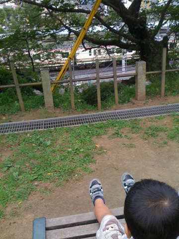 城山公園にきています!電車が目の前に見えるので大好きな公園です。ポツポツ雨がふってるなぁ。