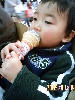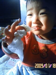 初めて食べるツララはおいしいのかソラはとってもHAPPYでした